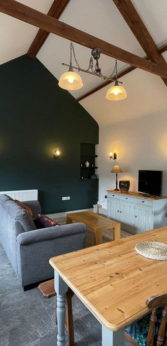A characterful fully furnished holiday home found amidst of the peaceful Welsh countryside. The building has been converted from traditional cow sheds and consists of original exposed beams, a spacious kitchen and dining/lounge area. This lovely accommodation is situated deep within our picturesque estate and within walking distance of our on-site farm park with an array of animals. The Cowshed has 2 bedrooms - one with a double bed and the second with either a twin or double.